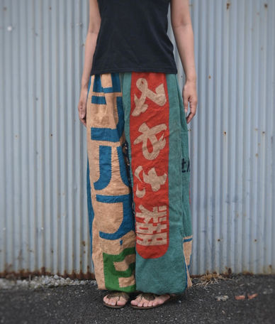 I make clothes by dyeing, unraveling, and mending tenugui hand towels, kimonos, and flags that have been popular in Japan for centuries. I feel warmth and positivity in the designs left behind by our ancestors, which contain the wishes and thoughts of the people. I hope that the clothes that someone once loved can be delivered to someone else in a new way.