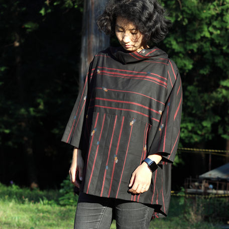 Designer Miwako Yoshida was born in 1944. After the birth of her first son, she couldn't find clothes she liked, so she began dressmaking with the thought of "I'll make clothes I want to wear". Fascinated by old kimono fabrics sold at antique markets, she came up with the idea of remaking them into clothes. Over the next 45 years, she continued to create clothes by remaking kimonos. Pursued designs that made women more attractive and that were easy to make, she accomplished the original patterns. She thinks that simply keeping valued kimono fabrics is a waste, and instead revives them as new works rather than throwing kimonos and clothes no longer worn. Her stance has element of SDGs. She turned 80 years old as of January 2023.