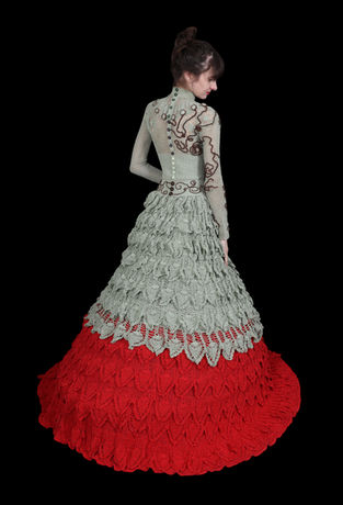 The clothing of the fashion and design brand Lisa Grodek is the sensual expression of feminine grace and classic elegance. The meticulous workmanship, the passionate attention to detail and the deceleration of the creation processes as well as the materials that guarantee sustainability and longevity are essential design features of each of the unique garments and accessories. The Lisa Grodek brand represents innovative crochet in the classical period and takes a revolutionary approach to the crinoline fashion of 1842-1870 in combination with elements from the late Renaissance, early Baroque fashion and design elements from the 1920s to 1960s. Lisa Grodek replaces the fabric materials originally used in these fashion eras exclusively with high-quality yarn.